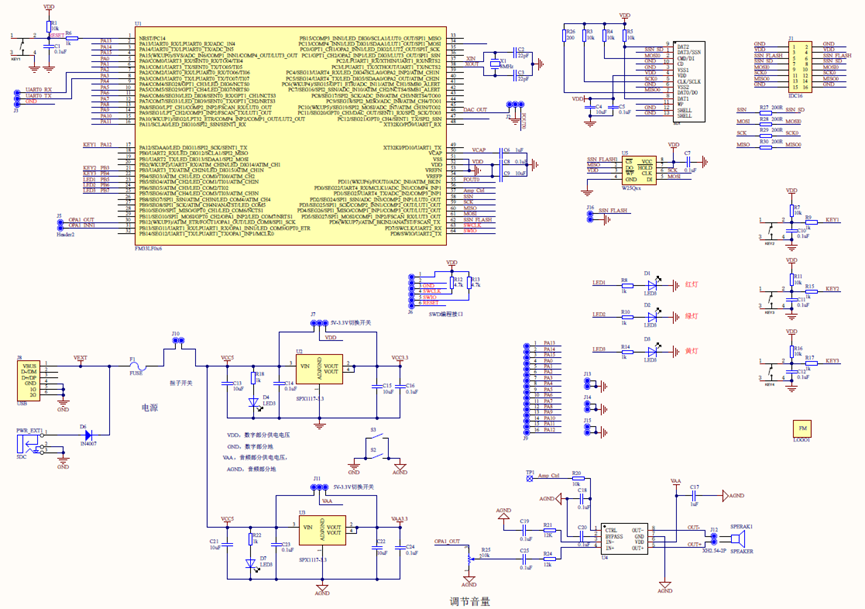 复旦微基于FM33LF016推出了一套DAC音频输出方案。该方案通过SPI接口从Flash中读取数字音频信号数据(wav格式),并通过DMA将数据传递给片内集成的DAC模块,实现将数字音频信号转换为模拟信号。