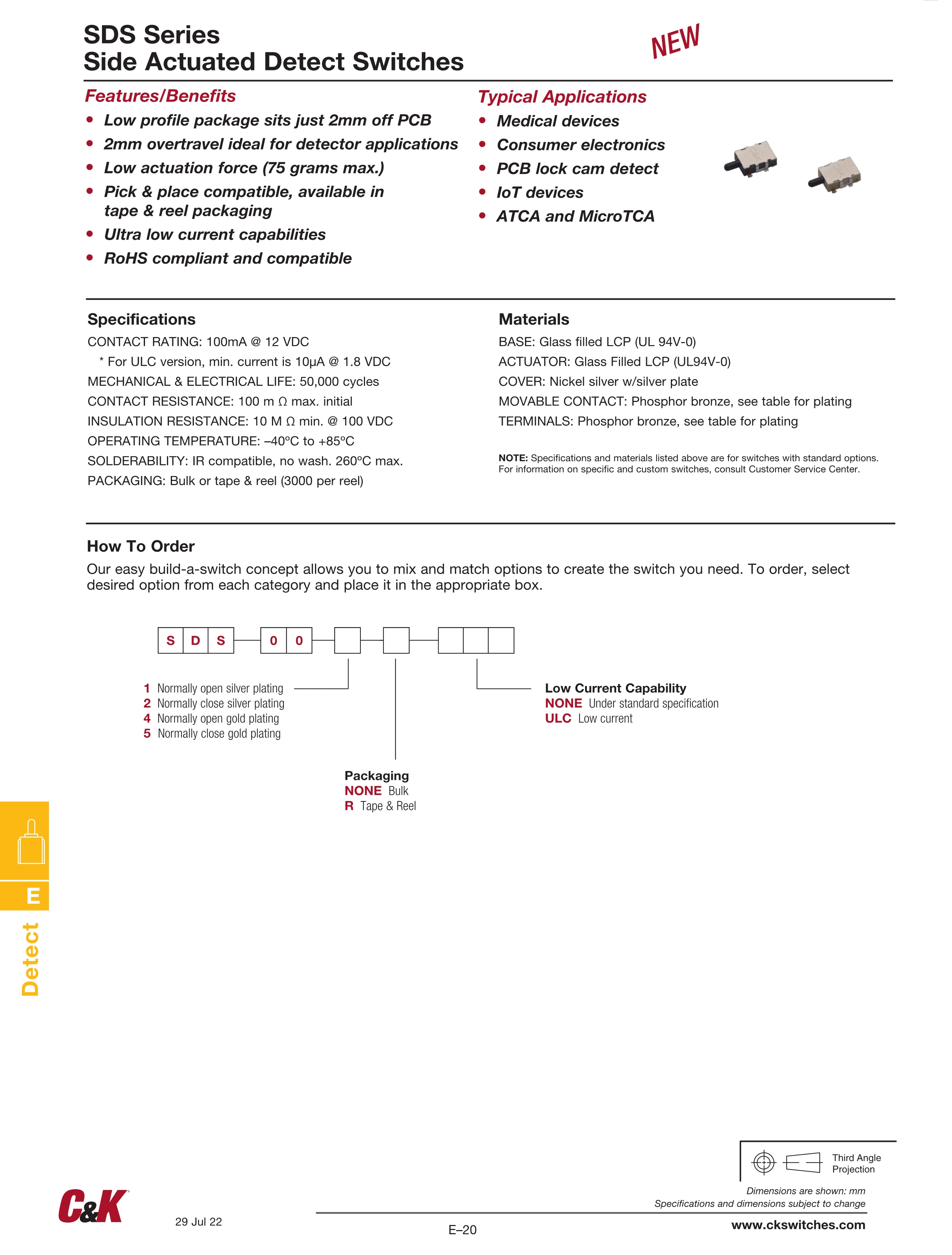 C&K检测开关SDS系列