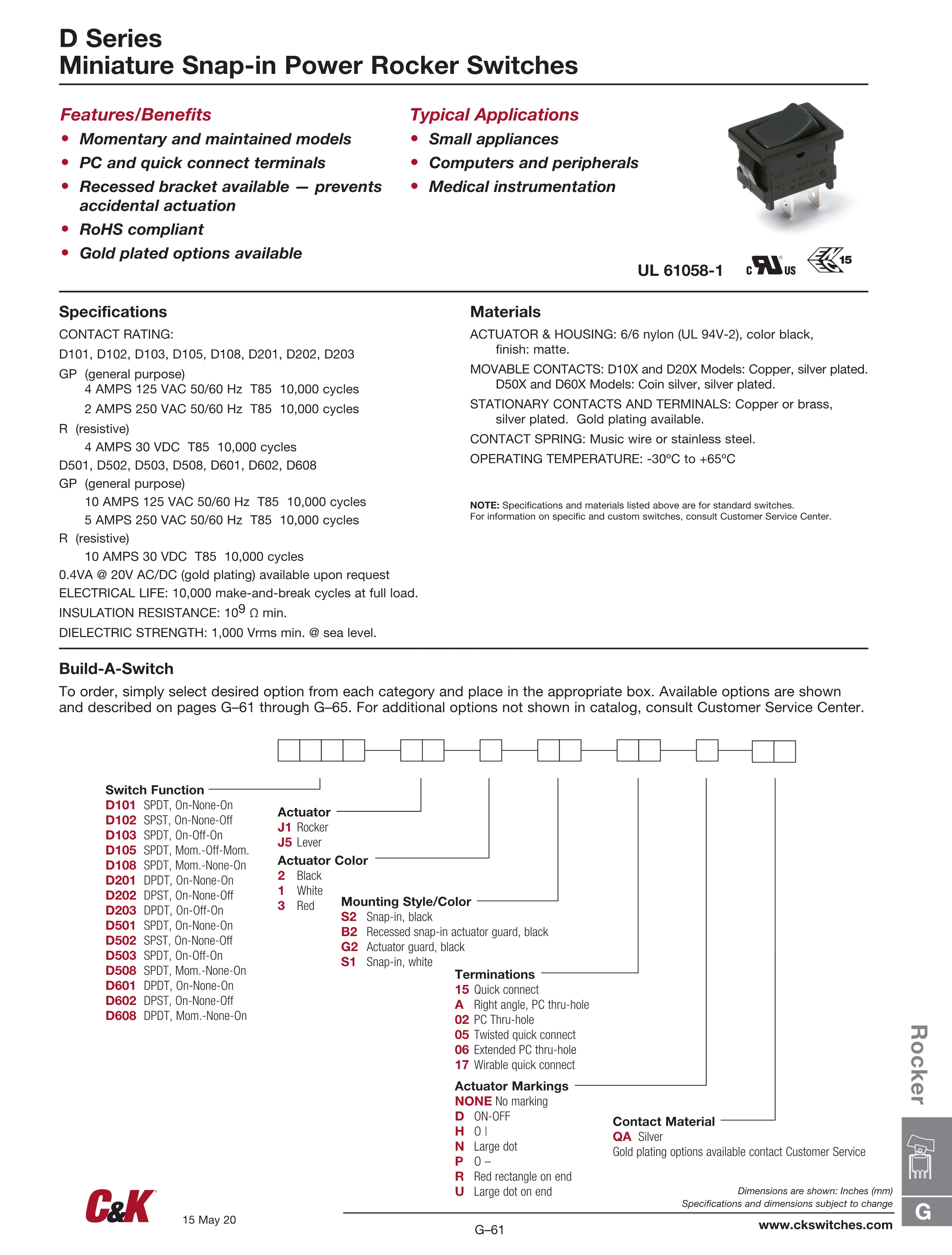 C&K翘板开关D系列