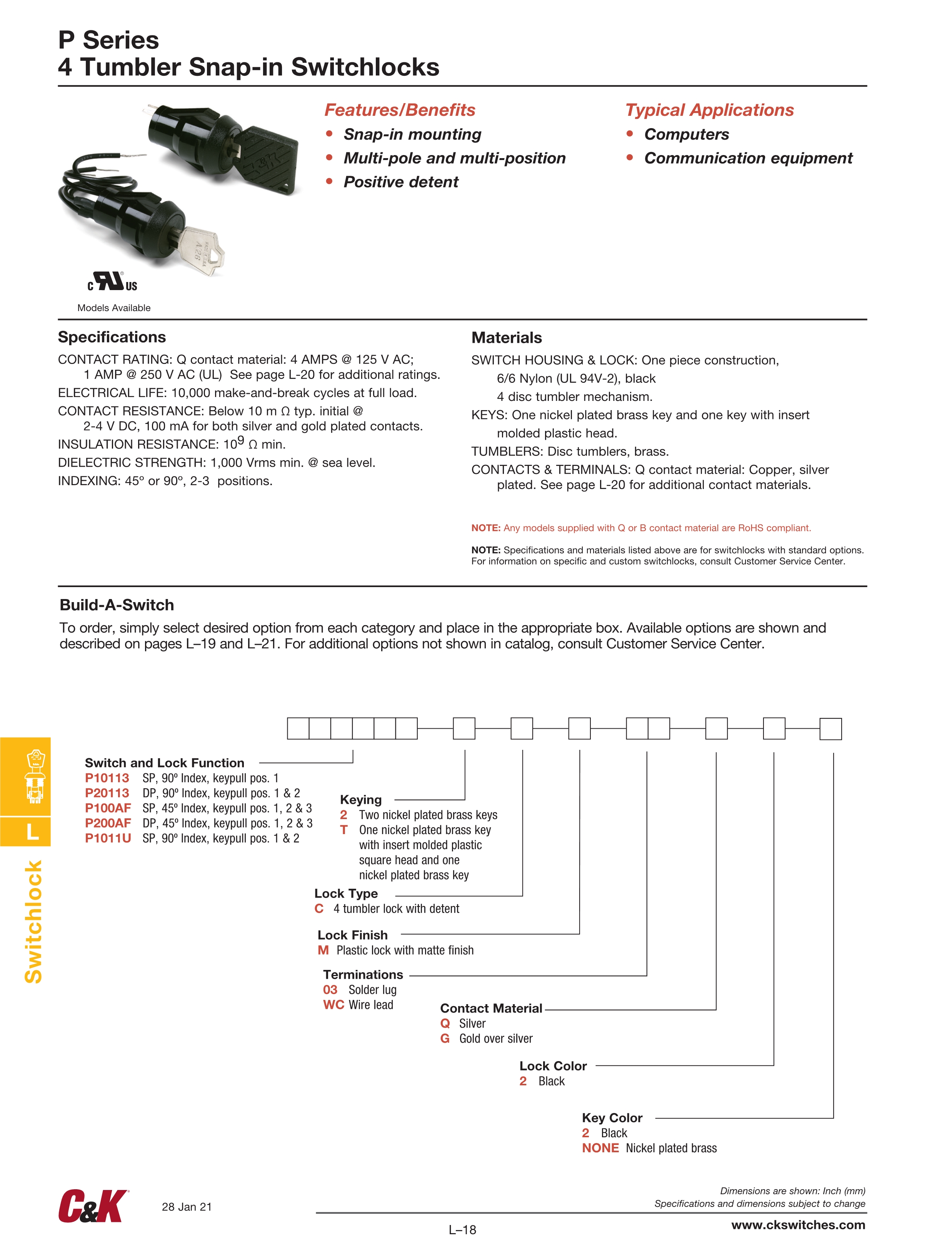 C&K钥匙开关P系列