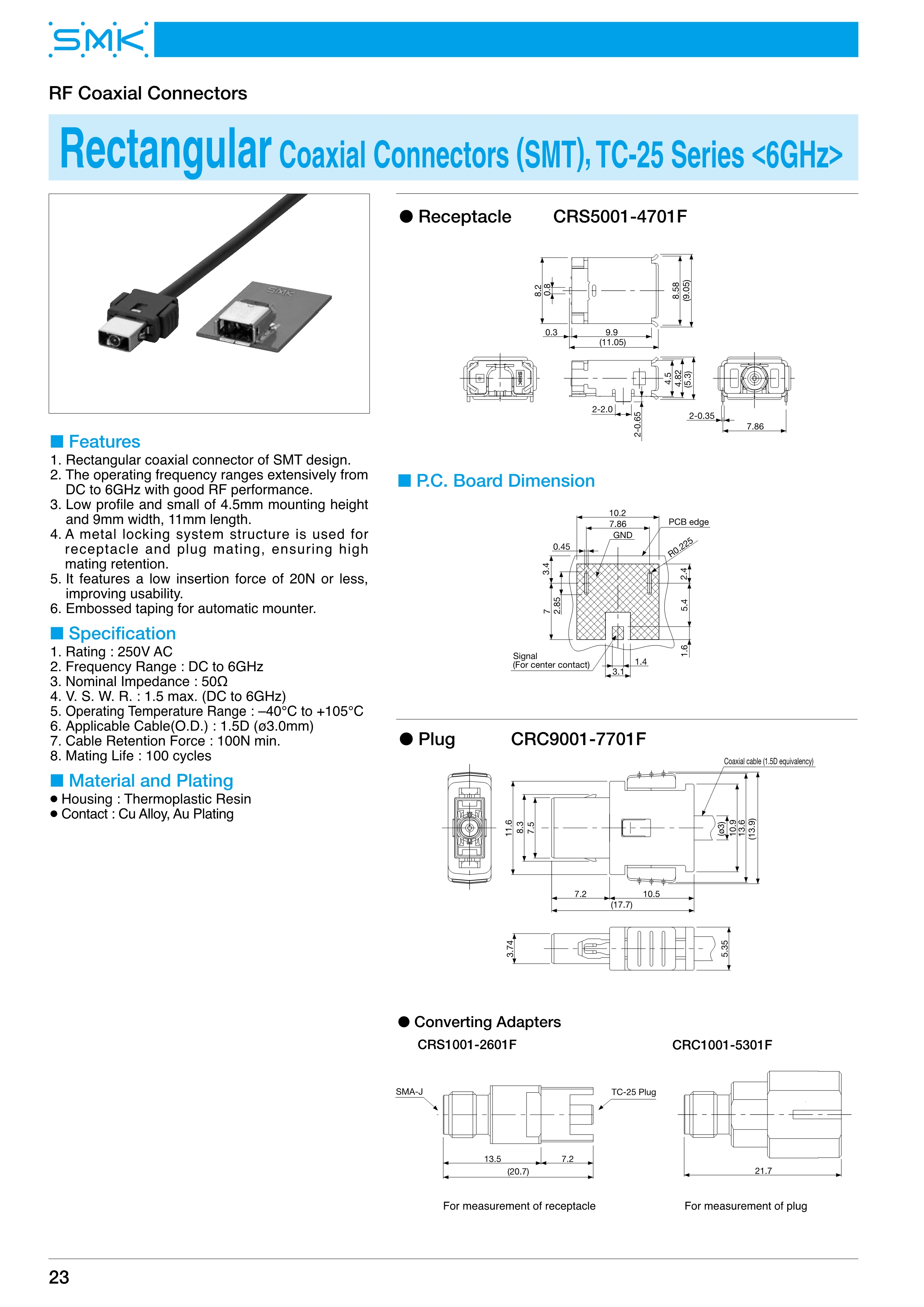 SMK高频率同轴连接器TC-25系列