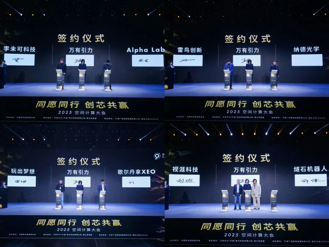 在大会签约环节,万有引力电子科技与视涯科技、燧石机器人、歌尔丹拿等多家产业链核心企业达成深度合作,共同推进空间计算技术的产业化落地。