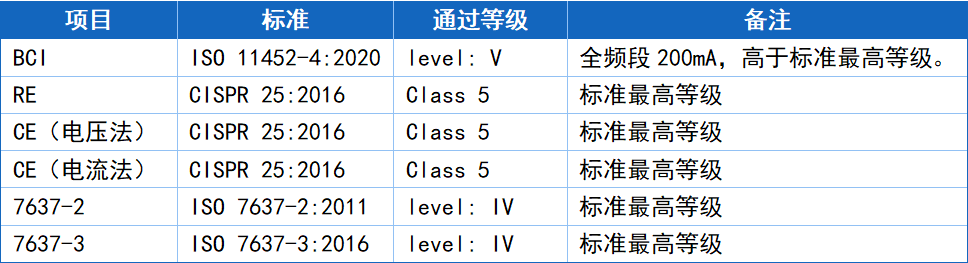 搭配SIT1044GQ的DUT在总线无共模电感滤波的情况下系统级EMC表现如下表: